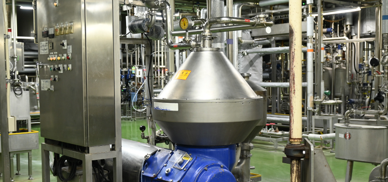 生乳を遠心分離機(クラリファイヤー)で高速回転させ、
